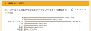 またやはりEAAに求められているのは「発音と英語コミュニケーション能力」だなと新めてそう感じます。(発音77.7%、英コミュ92.7%)